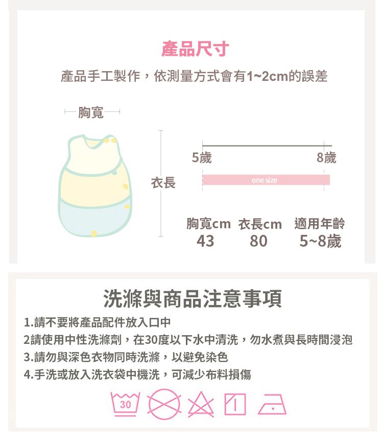 尺寸:胸寬40cm,衣長65cm