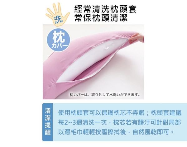 枕芯:若有髒汙可針對局部以濕毛巾輕輕按壓擦拭後,自然風乾即可