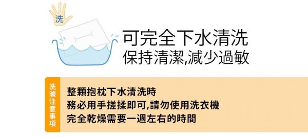 枕套:請放入洗衣袋,並用弱速洗程清洗