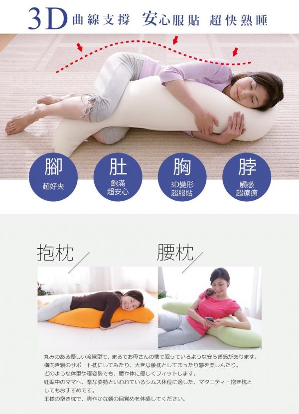 3D曲線支撐,從脖子、胸部、腹部到腿完美支撐,安心服貼超好睡唷~