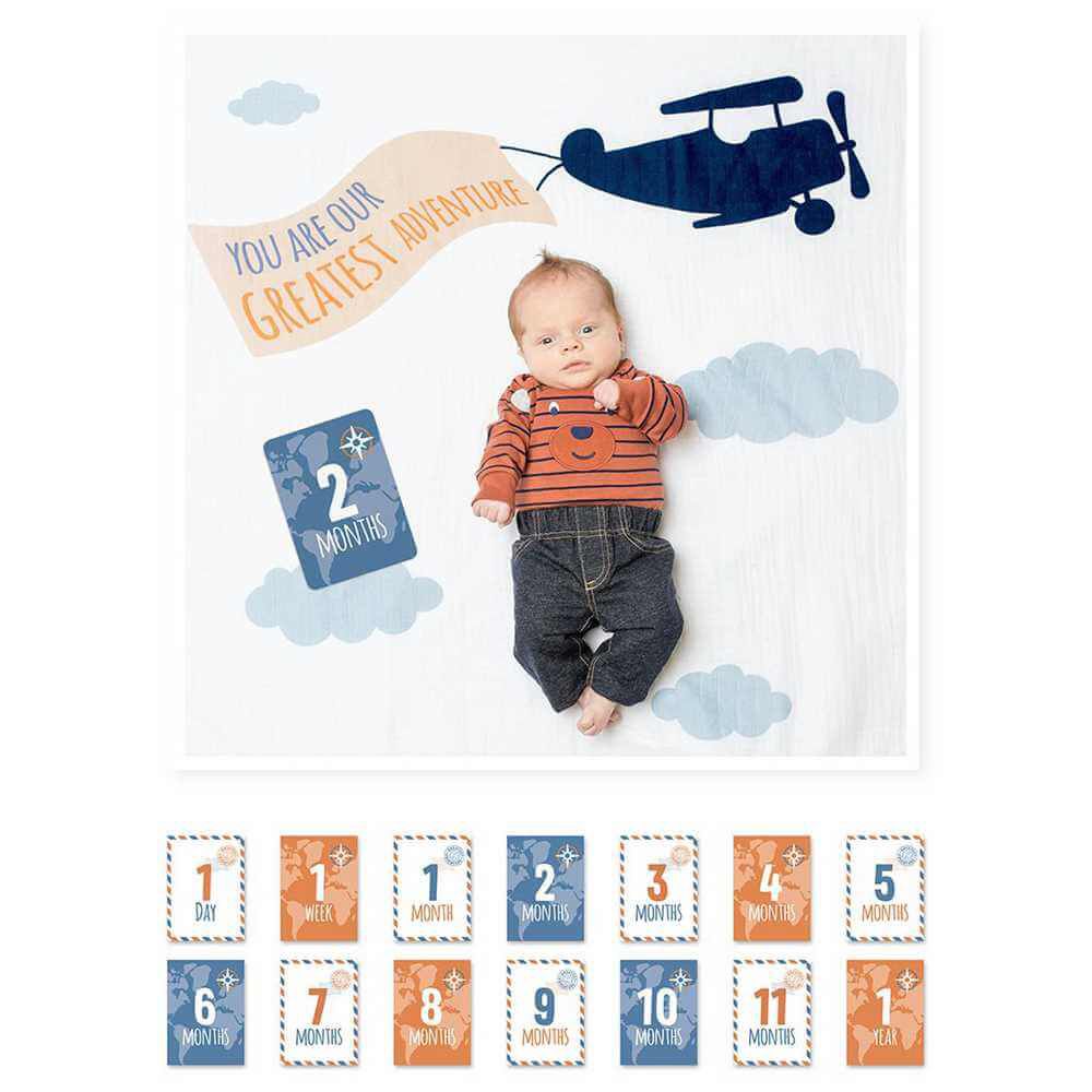 加拿大 lulujo - 寶寶成長包巾卡片組-哈囉