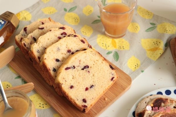 球球媽第二次嘗試在麵團中加入營養滿點的蔓越莓乾,營造不同口感。