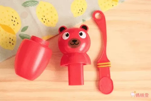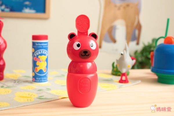 這一款泡泡熊最大的特點是,手不用碰到泡泡的管子~ 只要輕輕壓一下熊肚,泡泡環就會冒出來囉!按壓需要一點點小技巧,適合三歲以上的小朋友