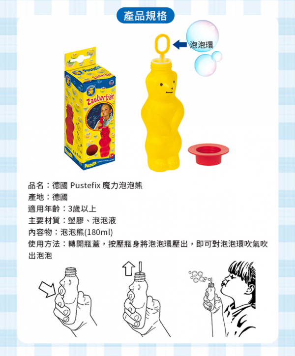 無毒吃到也不怕【德國製Pustefix】魔法泡泡熊