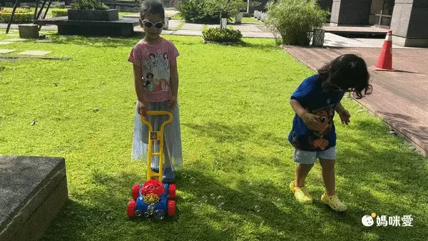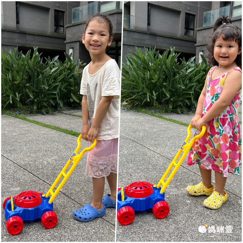 Tete和Kitty兩個雖然已經過了學步兒的年紀,看到推車還是很興奮,推著走滿足小女生扮家家當媽媽的幻想,兩個人還很認真研究泡泡從哪裡來!姐妹兩人一人推一人負責踩泡泡~