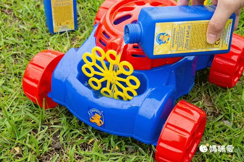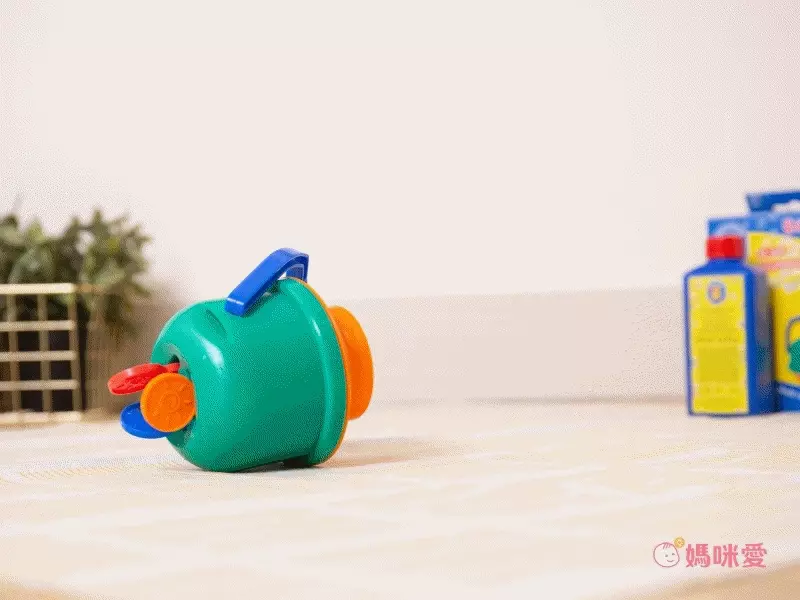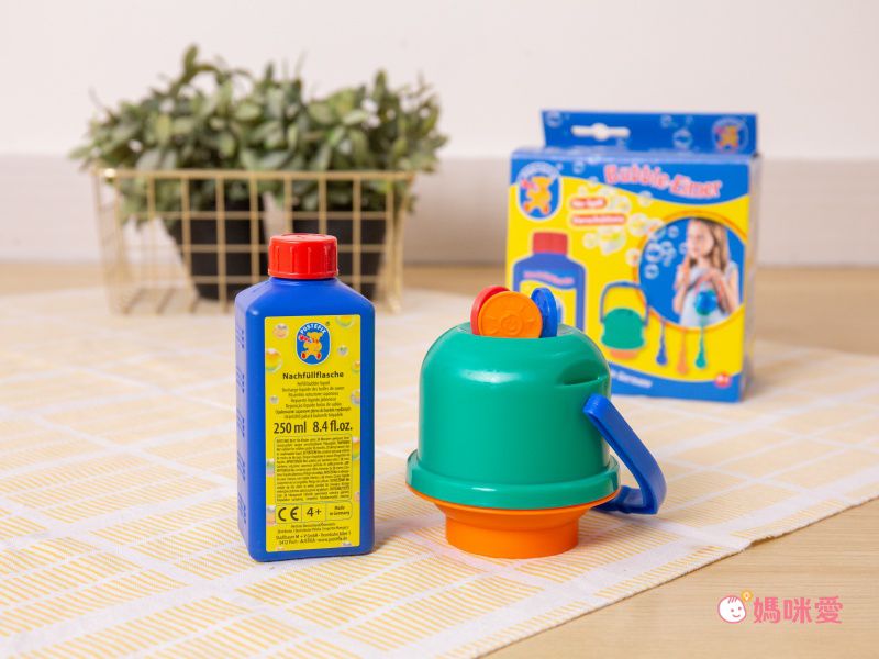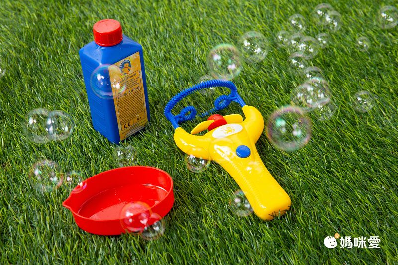 爸媽也可以推著推車讓寶貝追著泡泡玩,不用用嘴吹到頭昏腦脹,優雅很多!