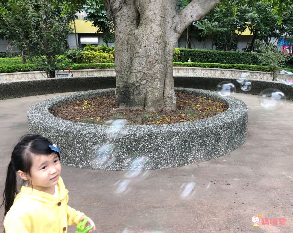 姊姊喜歡拿著泡泡槍轉圈圈,她說這樣就在泡泡樂園裡了!