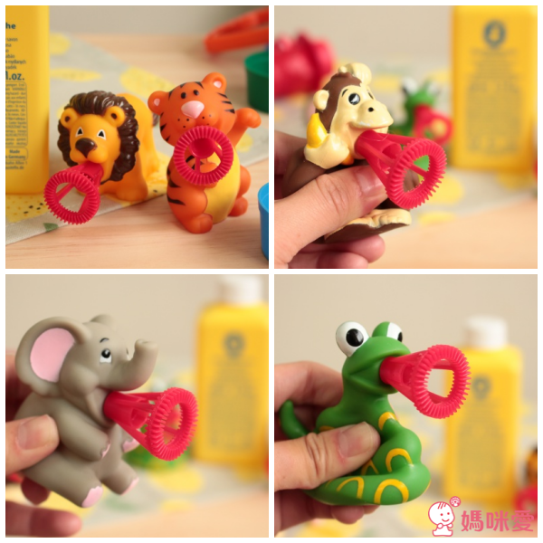 來看看實品質感~動物的身體就是泡泡瓶,瓶身圓弧小手很好抓握,吹泡泡也更方便啦!光是孩子自己吹泡泡就能玩不停~野餐一定要帶!