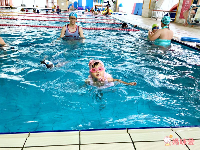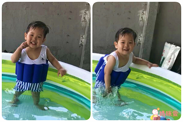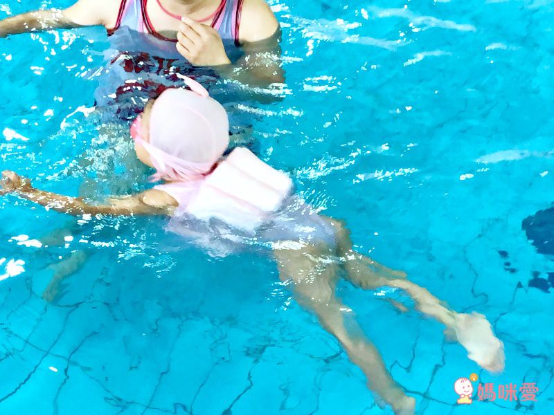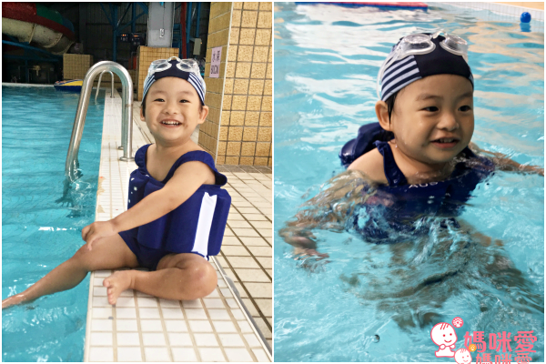 有了浮力游衣,淞兒可以自己向前游啦!而且,嘴巴離水面還有一段距離,不怕喝到生水,媽媽在旁邊大聲加油吧!