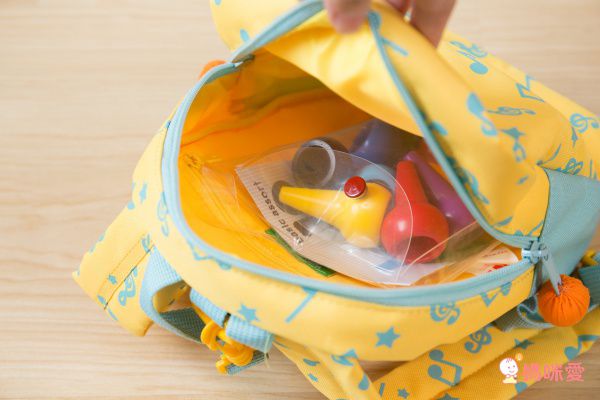 自己的東西自己背~小小的包包裡面裝了兩片尿布、一個水壺、一個圍兜、一副餐具跟一顆奶嘴,空間還很夠呢!孩子都超愛吸睛度100%的這個背包的!出門都會主動自己收東西啦~