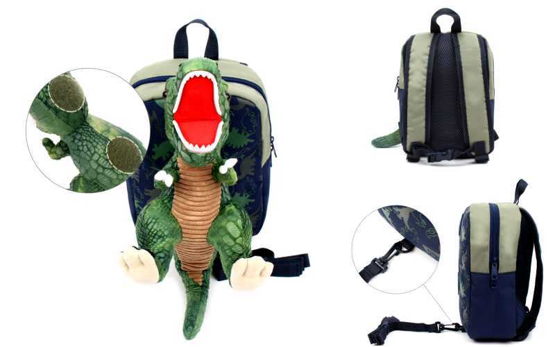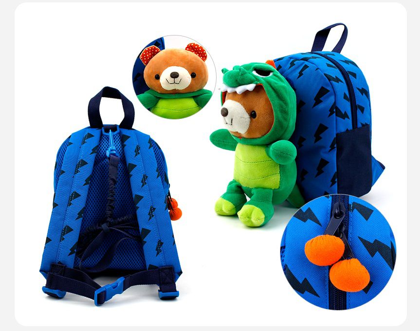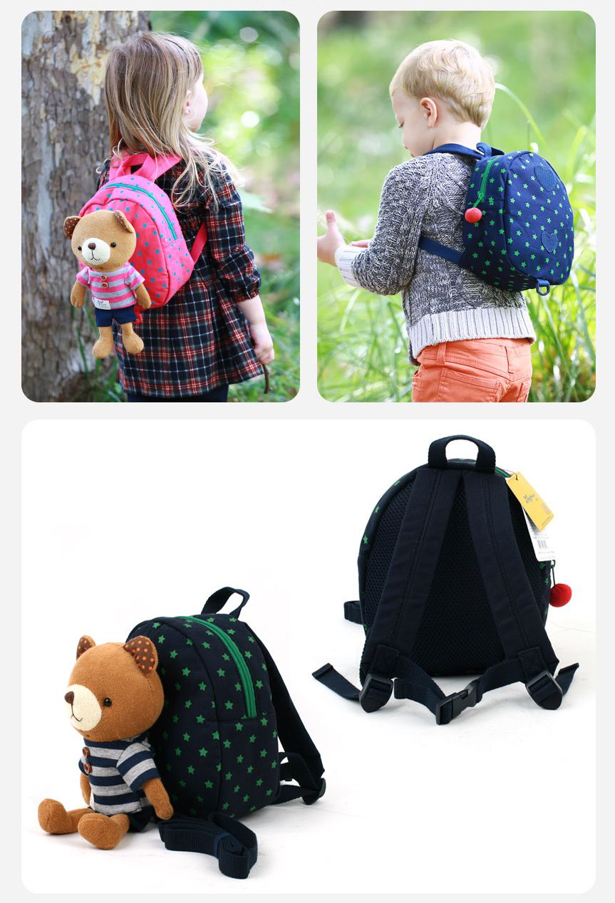 防走失包還有另一款掀蓋式可以選擇,這款的玩偶是固定在包包上的唷!