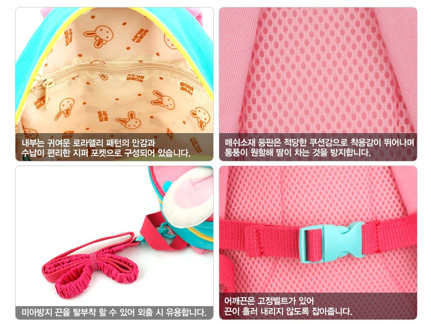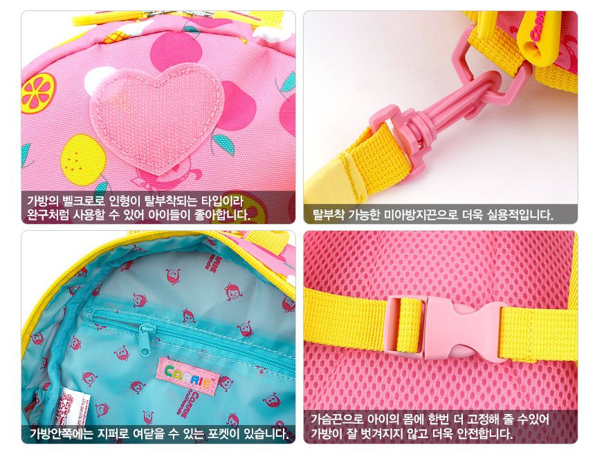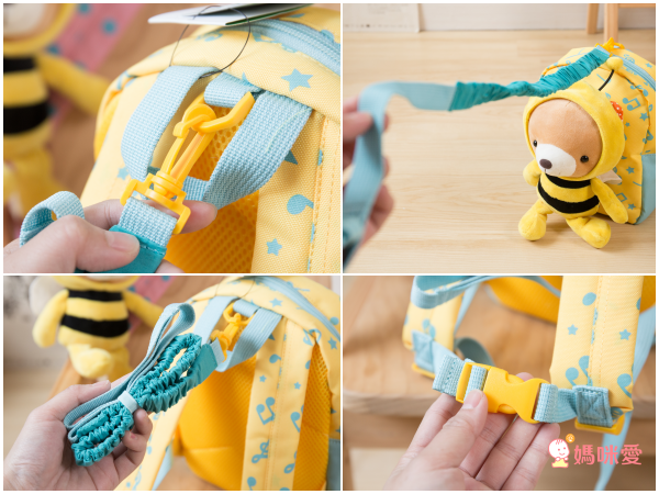 每個包包都有一條防走失帶(依照包款不同,防走失的扣環,有些設計在下方、有些則在上方喔),出門的時候直接拉著,不擔心孩子會一下跑太遠~這條防走失帶是可以拆掉的,沒有用到的時候可以收在包包裡(以免下次要使用時沒帶到 XD)