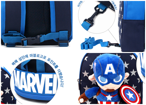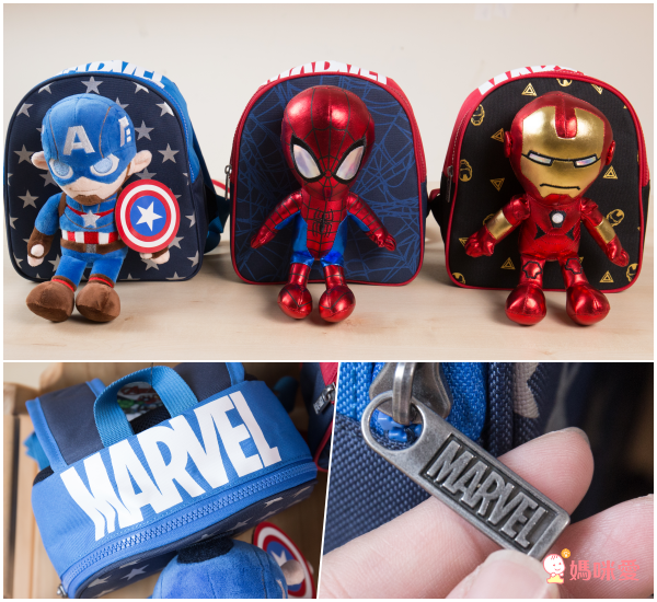玩偶真的超級精緻,背後的透氣網格背起來更舒服!有附防走失繩,能夠靈活運用~包包的上面還有MARVEL的字樣,超帥的啊!