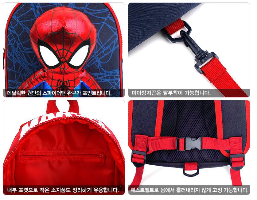 蜘蛛人的有點金屬光澤,背包剛好變成背景超有電影畫面感!裡面還有一個內袋喔~基本的設計都跟美國隊長款一樣!
