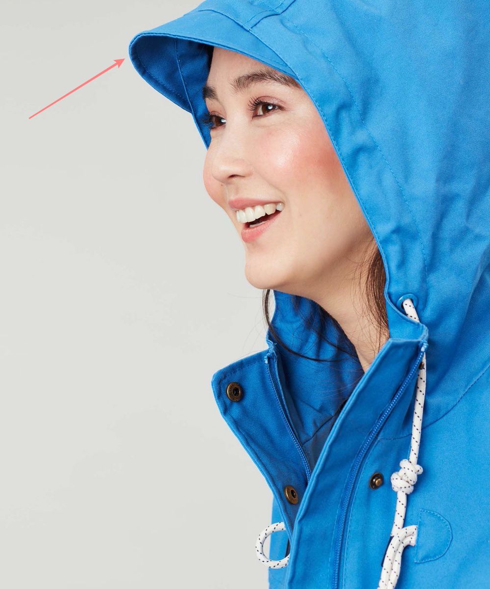 這款一樣有腰線跟調整帽子的設計,後方下擺還有小開叉設計,看起來更加活潑