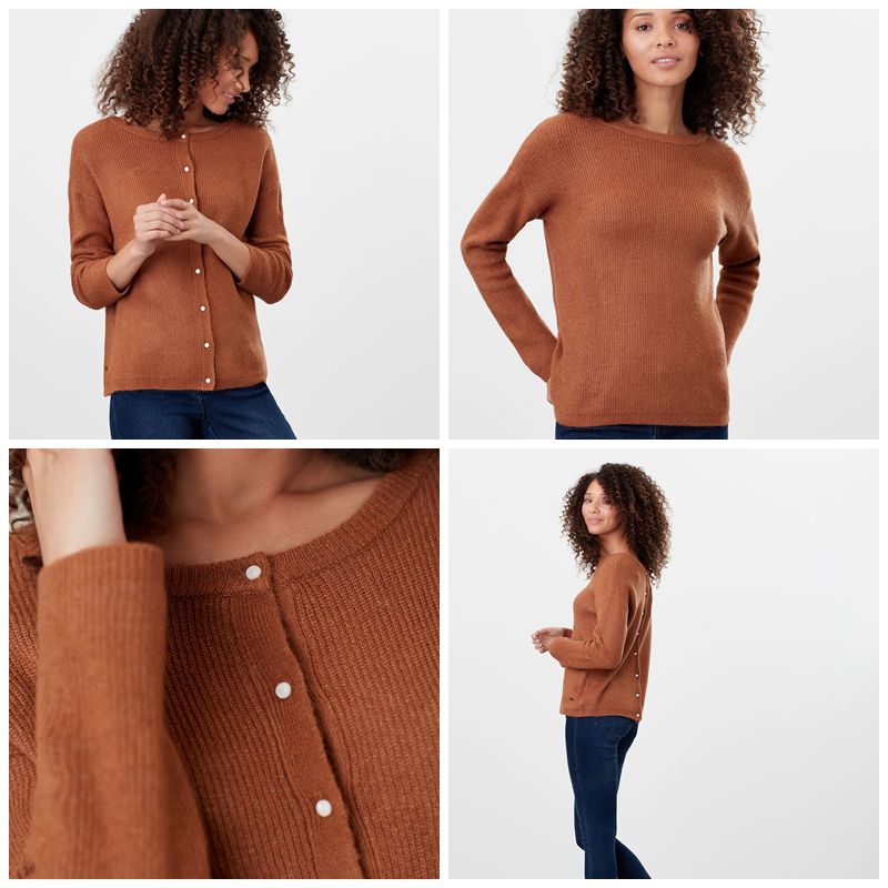 這件大圓領的設計看似簡單,但後扣、前釦都可以,變換兩種穿搭,現在也很流行直接穿針織外套當上衣呢~有種慵懶的性感