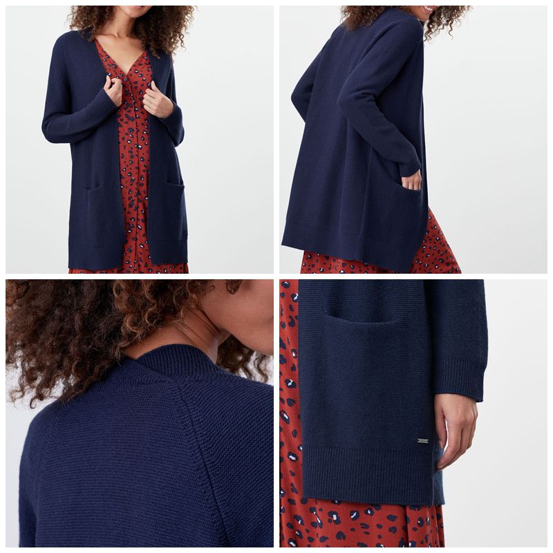 深藍色也是另一個百搭選擇,領子處的交錯設計相當特別