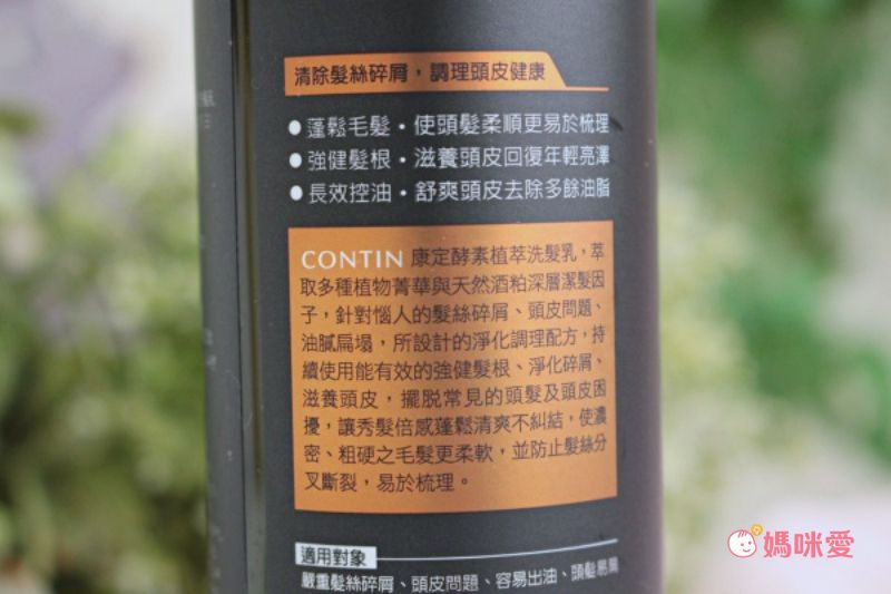 髮型整理好整個看起來就會有精神許多,想當年,妞媽固定進美髮沙龍維持一頭美麗的秀髮。但自從有了孩子後,尤其二寶出生後,天天洗頭這件事根本成為妄想!每天幾乎都洗戰鬥澡啊(´c_`) 這時候選對一瓶洗髮精就很重要,有頭皮容易出油、頭皮屑、搔癢,頭髮扁塌、產後髮根脆弱問題的媽咪務必試試看【CONTIN康定酵素植萃洗髮乳】