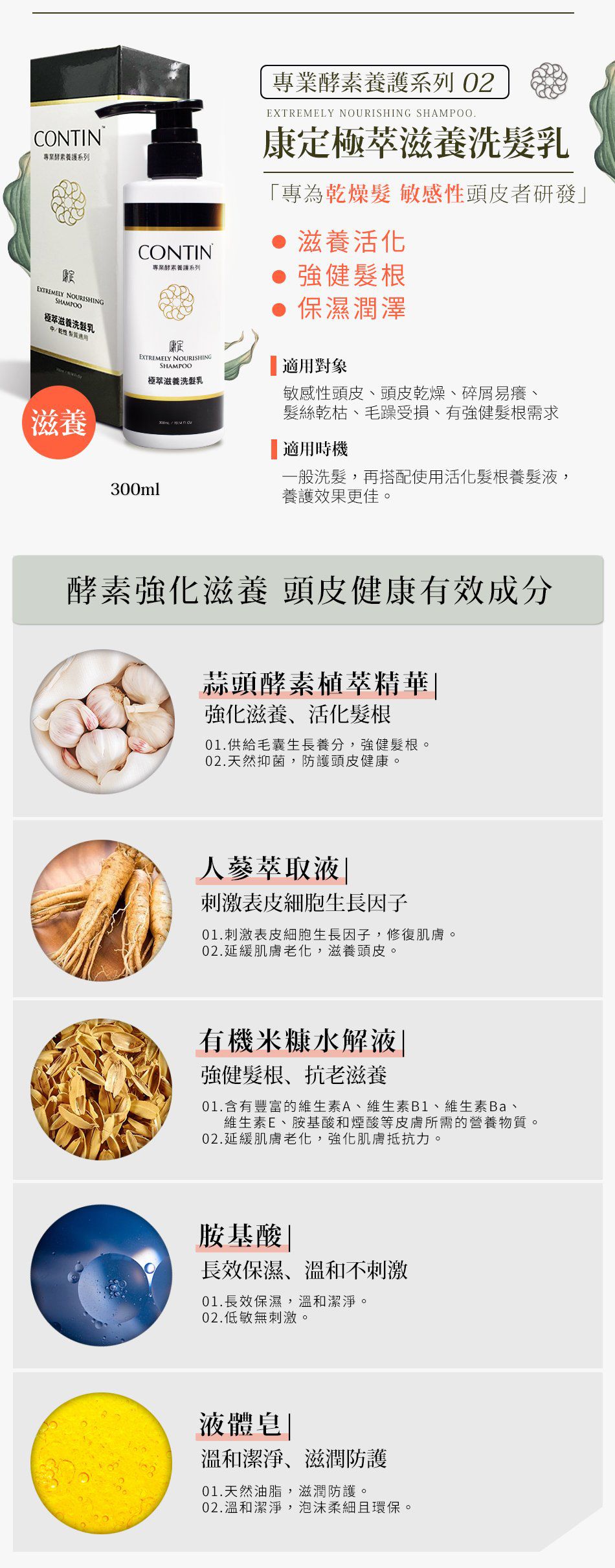 康定 CONTIN - 酵素植萃洗髮乳-單入組-300ml*1