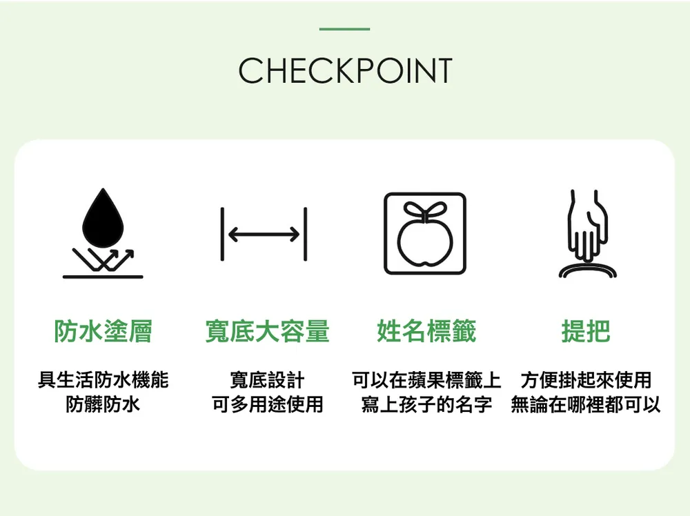 可以在正面的蘋果標籤上寫上寶貝的名字,就不怕拿錯啦~