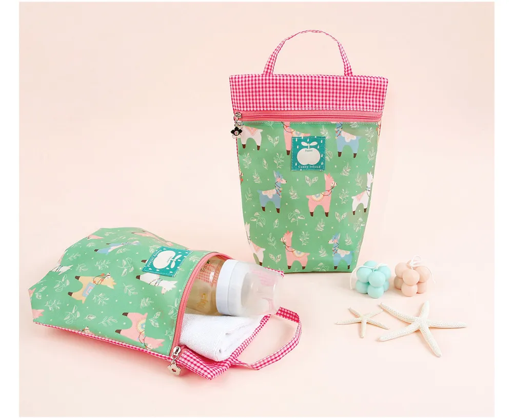 方便媽咪們外出的收納好物!底部寬底設計,奶瓶放進去拉鍊也能拉起來~ 另外因為表層有做防水塗層,編媽也很推薦用來收納尿布呦!再來是編媽最喜歡的提把設計,這樣不管是掛在推車上、純手提、或放入背包當收納小包都非常可以,一包多用,真的超喜歡 ❤︎