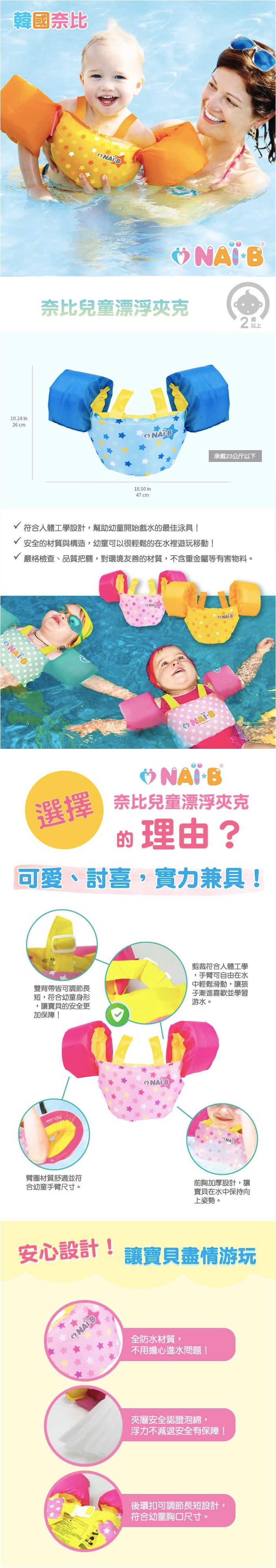 這一款的耐重是 15-25 kg,要確實選擇適合寶貝的游泳輔助工具喔!