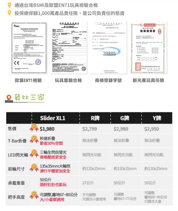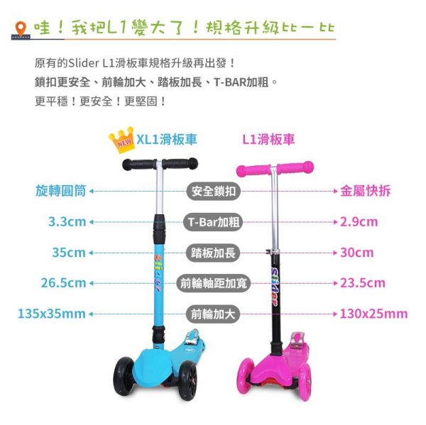 以 Happy Playing! Happy Learning!為出發點,Slider 滑來滑趣團隊擁有 15 年以上引進各國優質玩具的專業經驗,滑板車安全又耐用,而且方便折疊好攜帶,鮮豔搶眼的色彩配上酷炫閃光輪胎,小孩玩起來更有信心,也讓放電時光歡樂無比呀!