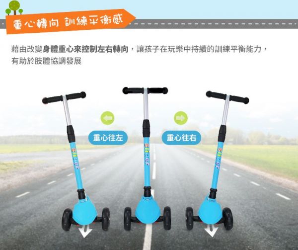 讓孩子玩滑板車是相當有益處的事情,不但能訓練孩子運動技能、全身平衡感以及身體各部位協調能力,更能達到健身利智的效果,並且讓孩子遠離 3C 也是非常棒的優點!但一般的兩輪滑板車需要的良好的平衡技巧,因此讓孩子初接觸滑板車時,應盡量選擇三輪的滑板車比較安全喔~