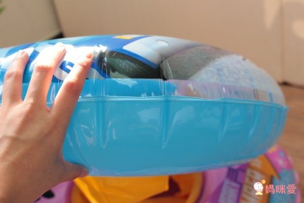 打氣之後泳圈厚實又飽滿、加上坐墊有軟墊,所以坐起來很舒服,安全度沒話說!