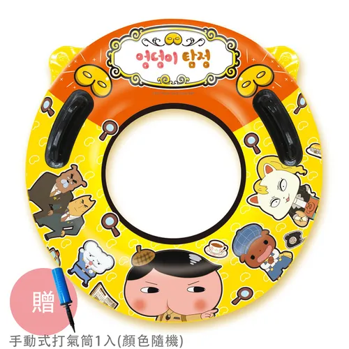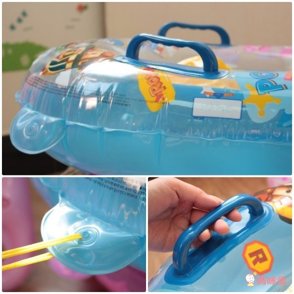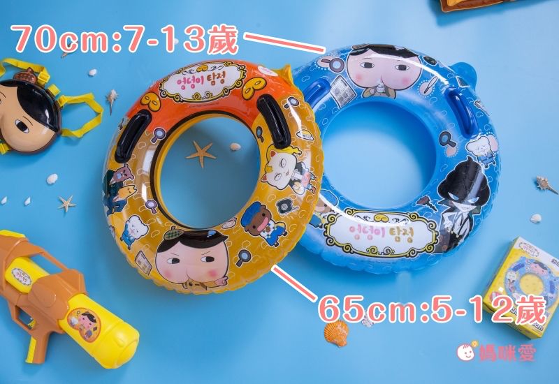 屁屁偵探泳圈的握把的設計編媽給 100 分~讓孩子可以輕鬆提著泳圈邁步,不然一般都要自己抱著泳圈走,很容易滑掉又費力