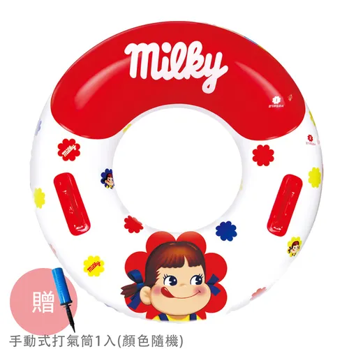 日本不二家的牛奶妹巧克力也有戲水玩具啦!姊姊非常喜歡活潑可愛的牛奶妹,一看到就馬上說想帶著去玩水~