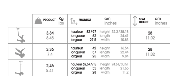 最後提供推車、滑步車、滑板車的高度、耐重表格給媽咪參考!