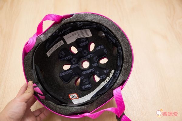 內裡有 7 mm 衝擊吸收襯墊,戴起來柔軟舒適,也能增加安全性~保護孩子的頭部安全。
