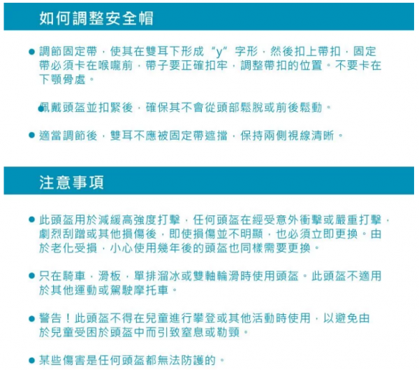 - 塑膠殼在零下的溫度會失去彈性,而影響材料性能。建議您不要在低於 -10°C 的溫度下進行溜冰或滑板運動,因為塑膠殼的耐撞能力可能會下降。