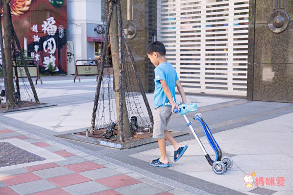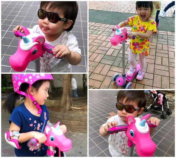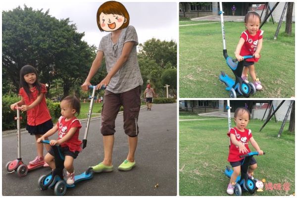 因為糖糖還不會使用滑板車,所以由牛牛來示範給媽咪看吧~感覺牛牛腿太長了,騎起來有點卡卡的,但是她還是滑的很開心~