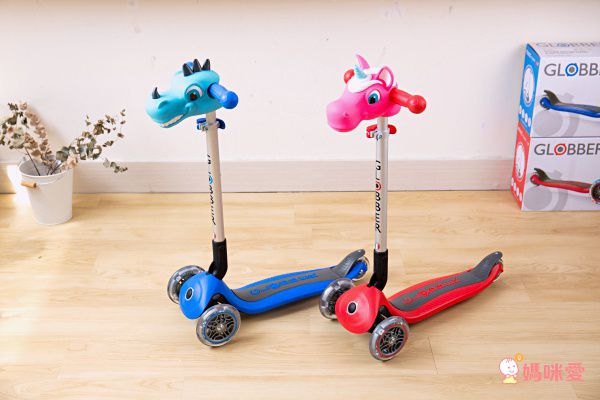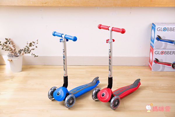 GLOBBER 滑板車會坐就可以當推車推著趴趴走,車身材質耐衝撞,買一台一勞永逸,很適合精打細算的媽媽!