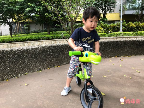 藉著來介紹一下各種模式有什麼不同吧!這是第 3 階段『滑步平衡車』不過糖糖還不太會溜,只會顛一下顛一下,沒辦法像姐姐一樣完的那麼順暢~(明明就是個小短腿,不知道為什麼要坐那麼後面呢XD)