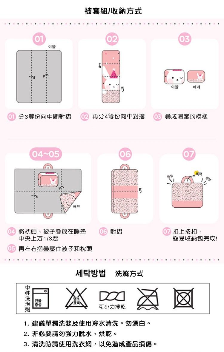 尺寸:被子130*110cm、睡墊120*80cm、枕頭40*25cm(±3%)