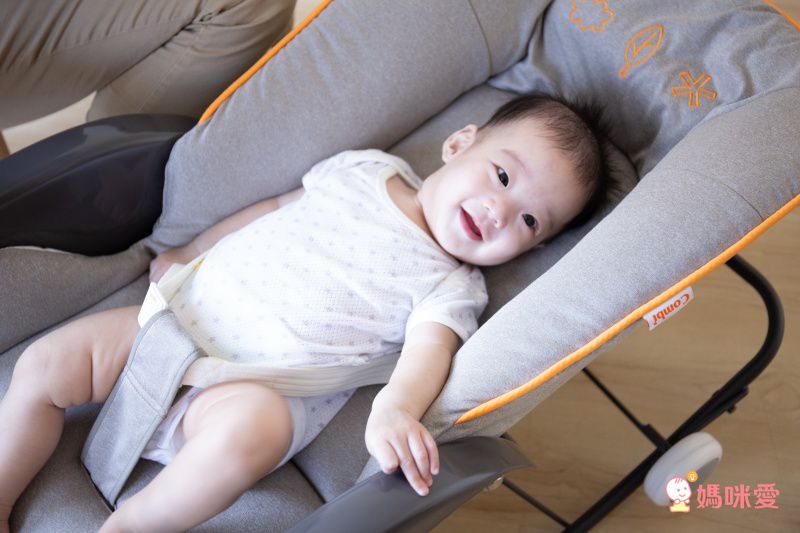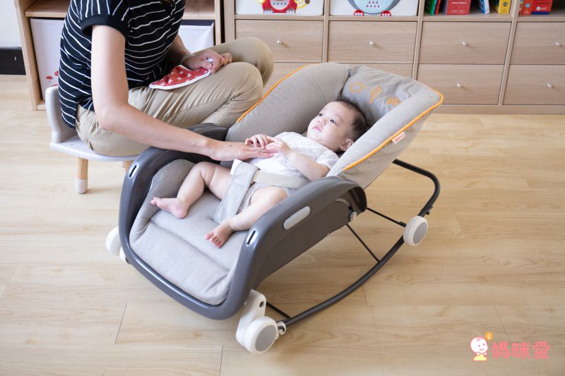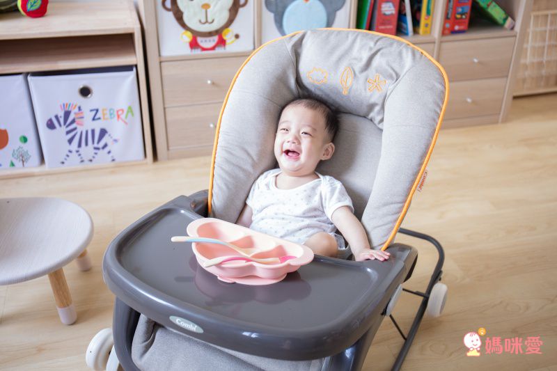 說到餐搖椅雙寶哥哥們也坐過!這台不同於以前入手的(已打入冷宮)平躺的體貼設計,讓還沒吃副食品的小寶可以舒舒服服的躺在裡頭。