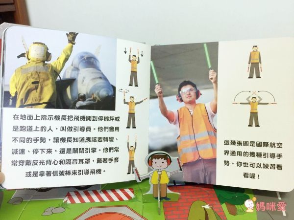 書中還有認識各國國旗、綀習國際通用的引導手勢喔!