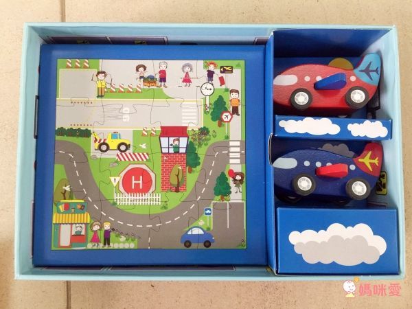 打開我的小小機場時,柚子就開始問說拼圖咧?我要開始拼拼圖了!一下子就把16片拼圖給拼好了!
