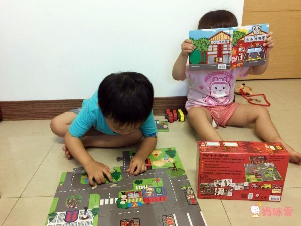 拼圖完成後,消防隊就要準備出任務啦~~一直聽到柚子說:啊~這裡失火啦!消防隊要準備出動了,接著柚子甄甄就會開著消防車和救護車出動,火滅完後柚子就會說:呼~終於把火熄滅了
