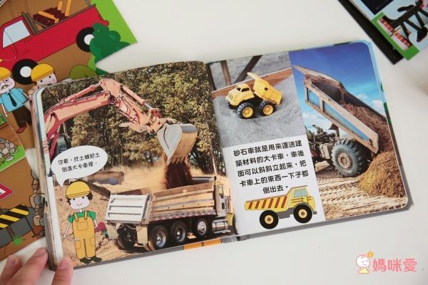 主題書可以帶領小朋友認識工地裡的各種車子,也會介紹車子的運作及功能