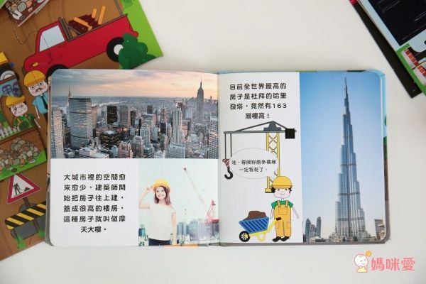 還有建築的物料和大樓的施工過程,讓小朋友可以更加了解建築工地和車輛喔!