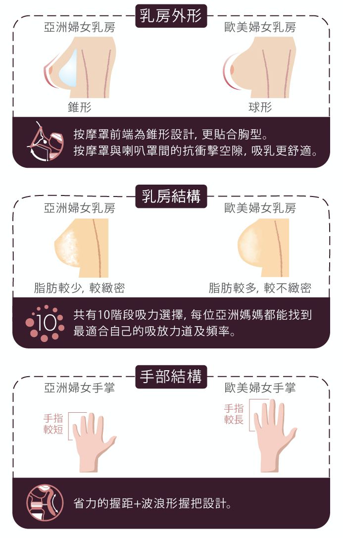 ✔ 吸乳器矽膠罩貼合亞洲媽媽乳房外型,提升集乳舒適感