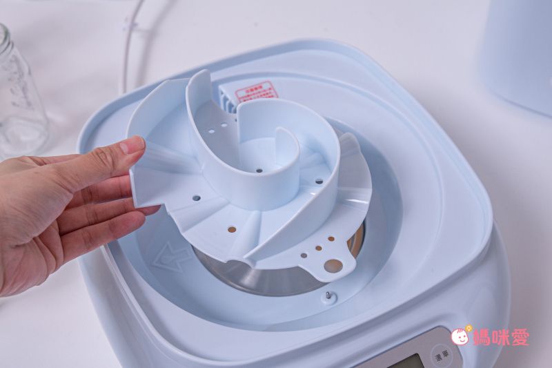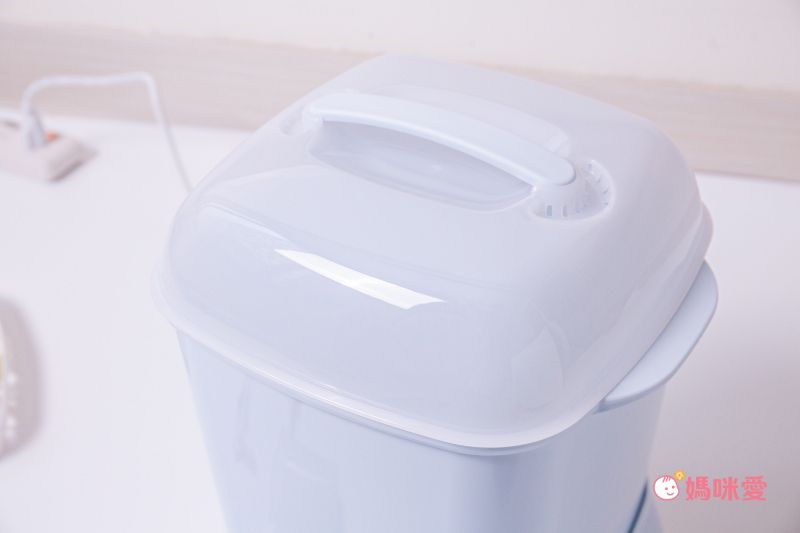 最後將上蓋蓋上,奶瓶筒放置於主機就可以操作了!在消毒過程中要避開蓋上的透氣孔以防高溫燙傷唷!