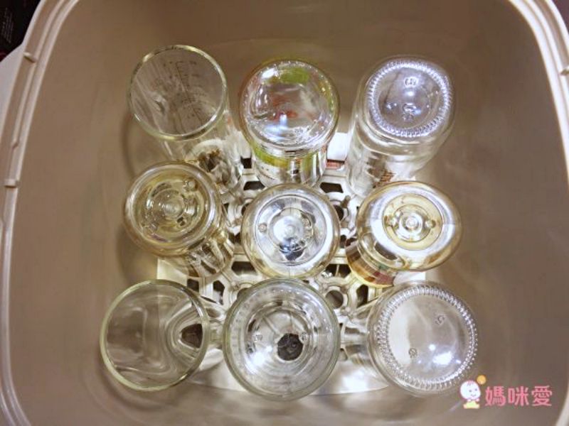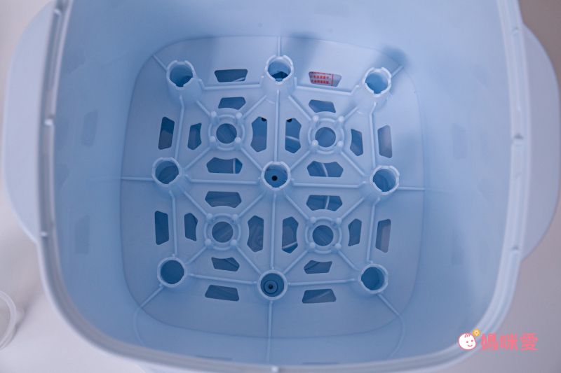 桶內大容量,可一次消毒烘乾 9 支寬口奶瓶、吸乳器配件、寶寶餐具、固齒器等等。真的非常方便!(當媽之後,真的會突然驚訝家裡有這麼多東西要消毒,舉凡奶瓶、奶嘴、集乳器、固齒器等等,都是需要定期消毒的呀!)