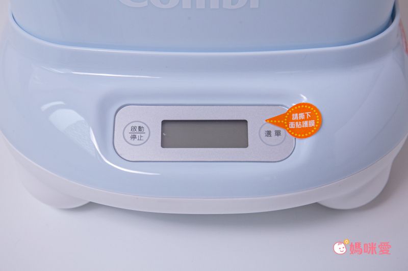 而且新版多了幾個好用的改良功能,LED 顯示螢幕讓進度、時間、功能都能夠一目了然!如果盛水盤沒有加水消毒或是奶瓶筒沒準確沒放好,螢幕會閃爍並發出"嗶嗶"警示聲提醒!解決了半夜消毒,結果到早上才發現因為上述等原因導致程序沒有跑完的窘境,是不是很實用呢~ (卡卡咩的真實經歷啊!)如果按了右方選單鍵的功能沒有再按左方啟動鍵,30秒後就會自動關閉!這個設計完全就是預防大寶亂按誤開的防線~真的超貼心!