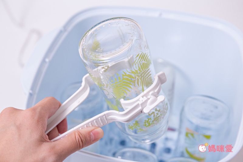 附設的奶瓶夾,讓媽咪可以輕鬆夾出奶瓶~不會被熱熱的蒸氣燙到唷!提醒媽咪,在將奶瓶奶嘴放進消毒鍋前,要先用奶瓶蔬果洗潔液將其清洗乾淨~~否則會殘留奶脂,在消毒過程中,更容易殘留在盛水盤成為水垢!(同團也有販賣唷~可以一起帶回家!)
