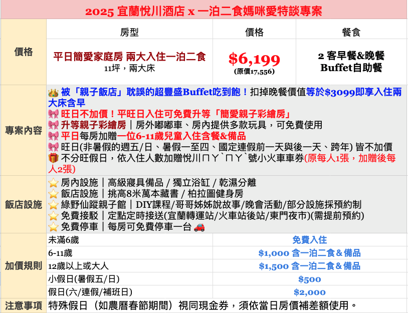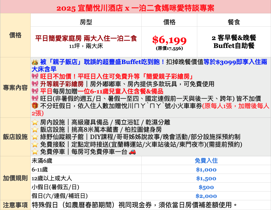 本次專案平旺日入住即可免費升等彩繪房!每個房型都是宜蘭美食或是景點,超級可愛的~而且彩繪房房內還會免費提供玩具呦!
